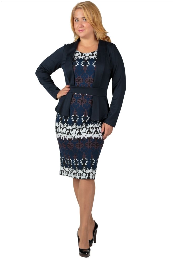 Стильное платье в офисном стиле, выполненое из качественного плотного материала "отоман" с имитацией одетого поверх принтованого платья стильного жакета с воротником-шалкой. Платье самодостаточно и в то же время лаконично. Прекрасный выбор для сильных и уверенных в себе женщин