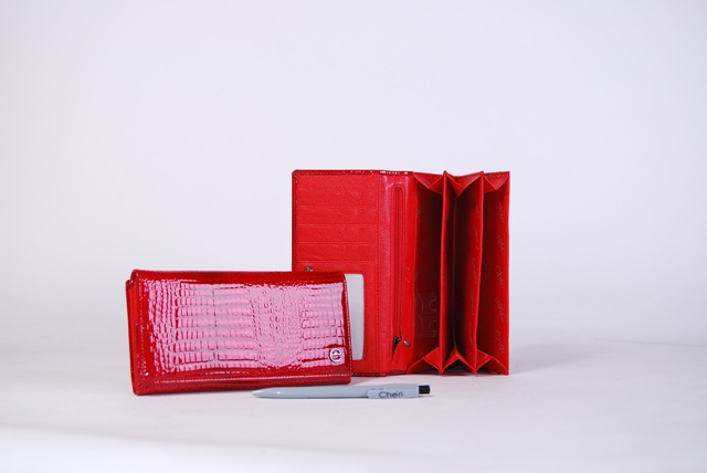 Кошелёк из натуральной кожи. Внутри 4 отделения, из которых один на молнии . Имеется отделение для визитных карточек. На задней стенке карман на замке . Закрывается на кнопку.