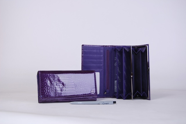 Кошелёк из натуральной кожи. Внутри 5 отделений, из которых один на молнии и один на замке. Имеется отделение для визитных карточек. На задней стенке карман . Закрывается на кнопку.